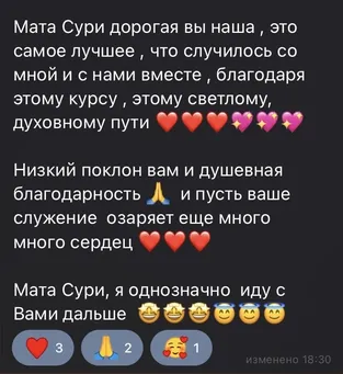 Поддержка в курсе предусмотрена. Во время обучения участники задают вопросы и получают ответы от наставницы Мата Сури. Сопровождение строится как помощь в понимании порядка чтения и в применении материала на практике.
